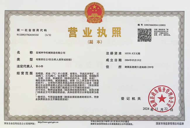 鹽城神華機械制造有限公司為中國石油、石化、海洋物資裝備(集團)總公司的網(wǎng)絡(luò)成員單位,公司注冊資金10558.8萬元整,公司通過了ISO9001國際質(zhì)量體系認證,取得了中國船級社船舶產(chǎn)品和配件使用證書。